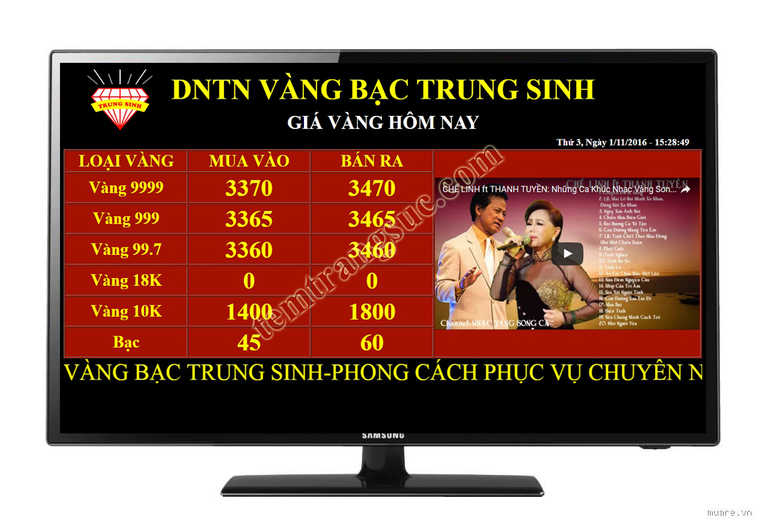 - TRÌNH CHIẾU TRÊN MÀN HÌNH TIVI (LCD): Hiển thị giá vàng, lời chào, logo ...rõ nét và tùy biến kích thước trên màn hình TiVi ở mọi độ phân giải